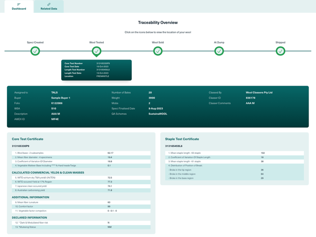 - Integrating industry data sources: AWTH pulls information from WoolClip, AWTA, the Data Communications Network, and Export Delivery Orders to create a unified traceability profile for every bale.
