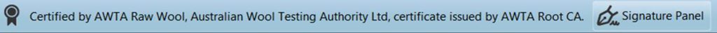 AWTA has introduced a number of security measures that protect the integrity of our Electronic Certificates. One such feature is the use digital signatures to secure the PDF files prior to distribution from our server. If the document is changed in anyway, then the signature becomes invalid. When viewing one of our eCerts, a valid document will display the signature below: