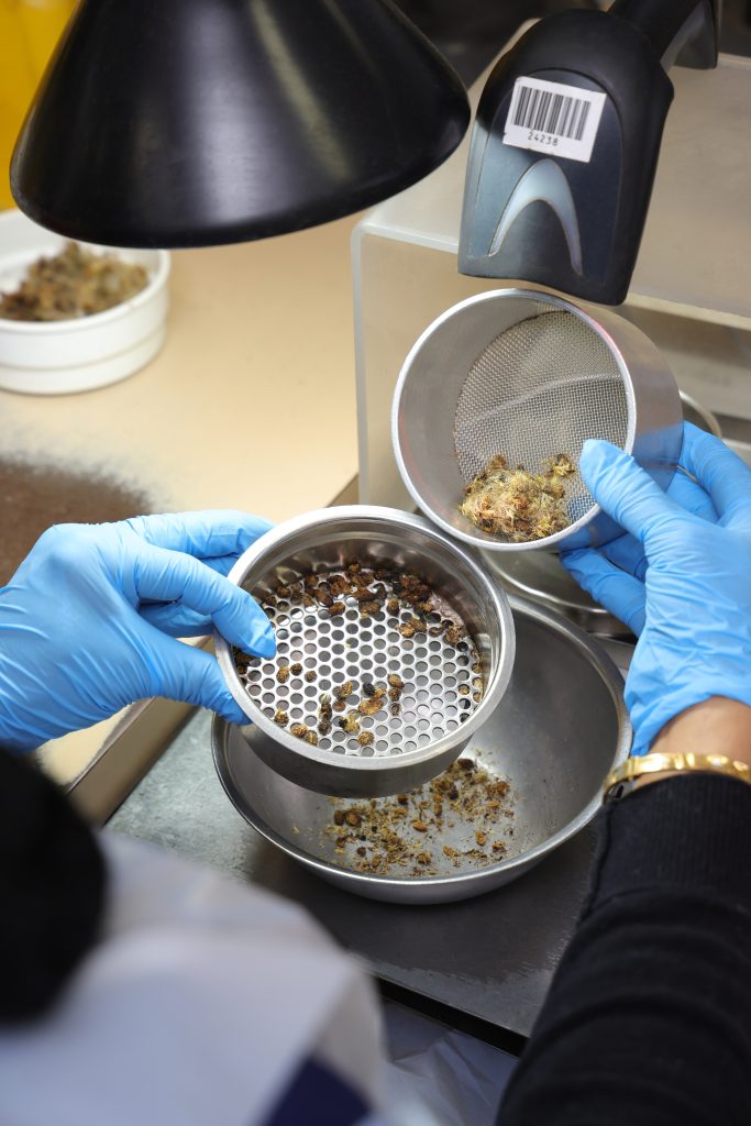 Yield is calculated by first determining the amount of clean dry fibre (Wool Base) and Vegetable Matter Base (VM).The amount of residual components that remain are determined and subtracted in order to obtain the Wool Base. These residual components are: