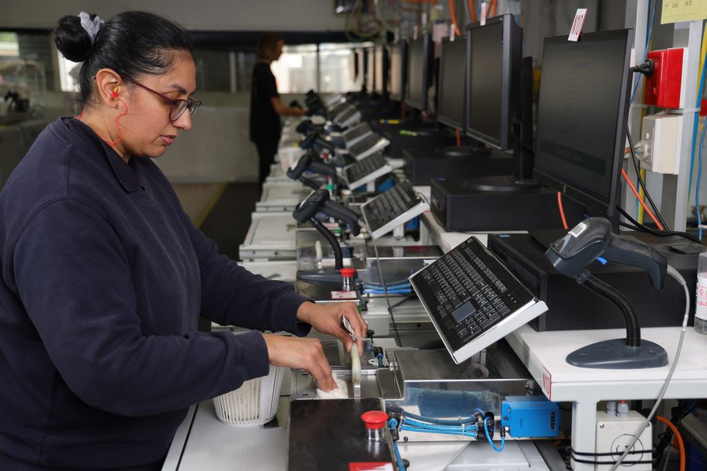 Fibre Diameter is the thickness of individual wool fibres, its measurment is used to determine the end-use of the wool. Fibre diameter is measured using a Lasercan instrument, results are reported in microns. A conditioned sample of scoured wool is mini-cored to produce a sub-sample consisting of snippets of fibre. The snippets are dropped into a bowl containing water and mixed before the water containing the suspended snippets is released and flows in tubing through a measurement cell containing an array of lasers. As the snippets move through the laser beams in the measurement cell the size of the shadow cast by the individual fibres is recorded.